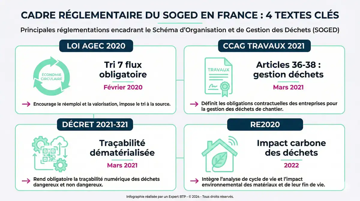 - Respectez le cadre réglementaire : loi AGEC, CCAG Travaux 2021, tri 7 flux, décret traçabilité