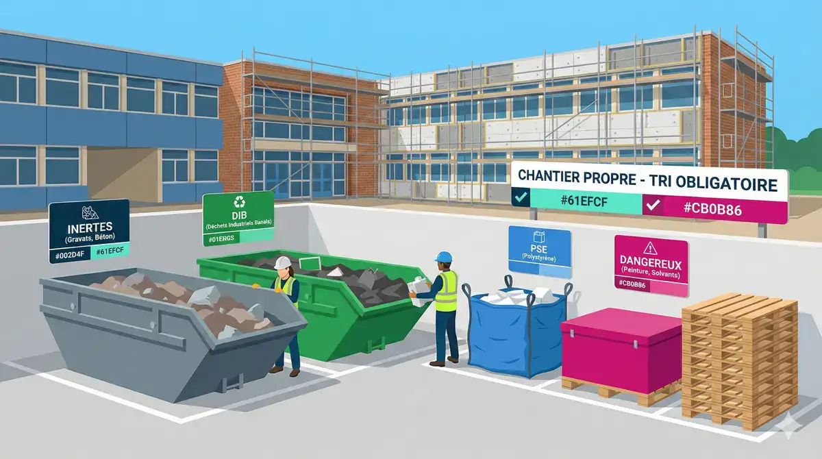 Pensez également à la sensibilisation des équipes. Une réunion de démarrage avec explication des consignes de tri, c’est un plus à mentionner. Des affichages rappelant les règles près des bennes, c’est encore mieux. Ces détails font la différence (on en a vu des dizaines comme ça !) 👷.